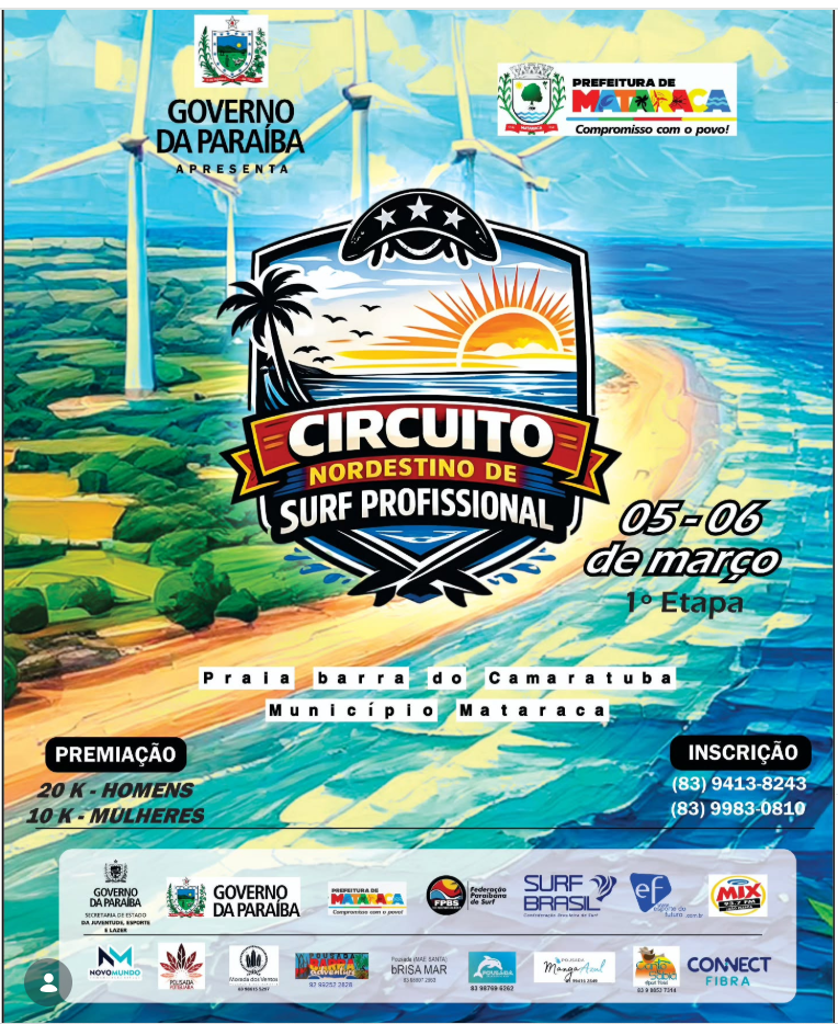 A Federação Paraibana de Surf anunciou esta semana o retorno de um dos eventos mais concorridos no surfe nacional – o Circuito Nordestino de Surfe Profissional. E a primeira etapa está marcada para os dias 5 e 6 de março em Barra de Camaratuda, no norte do estado da Paraíba.